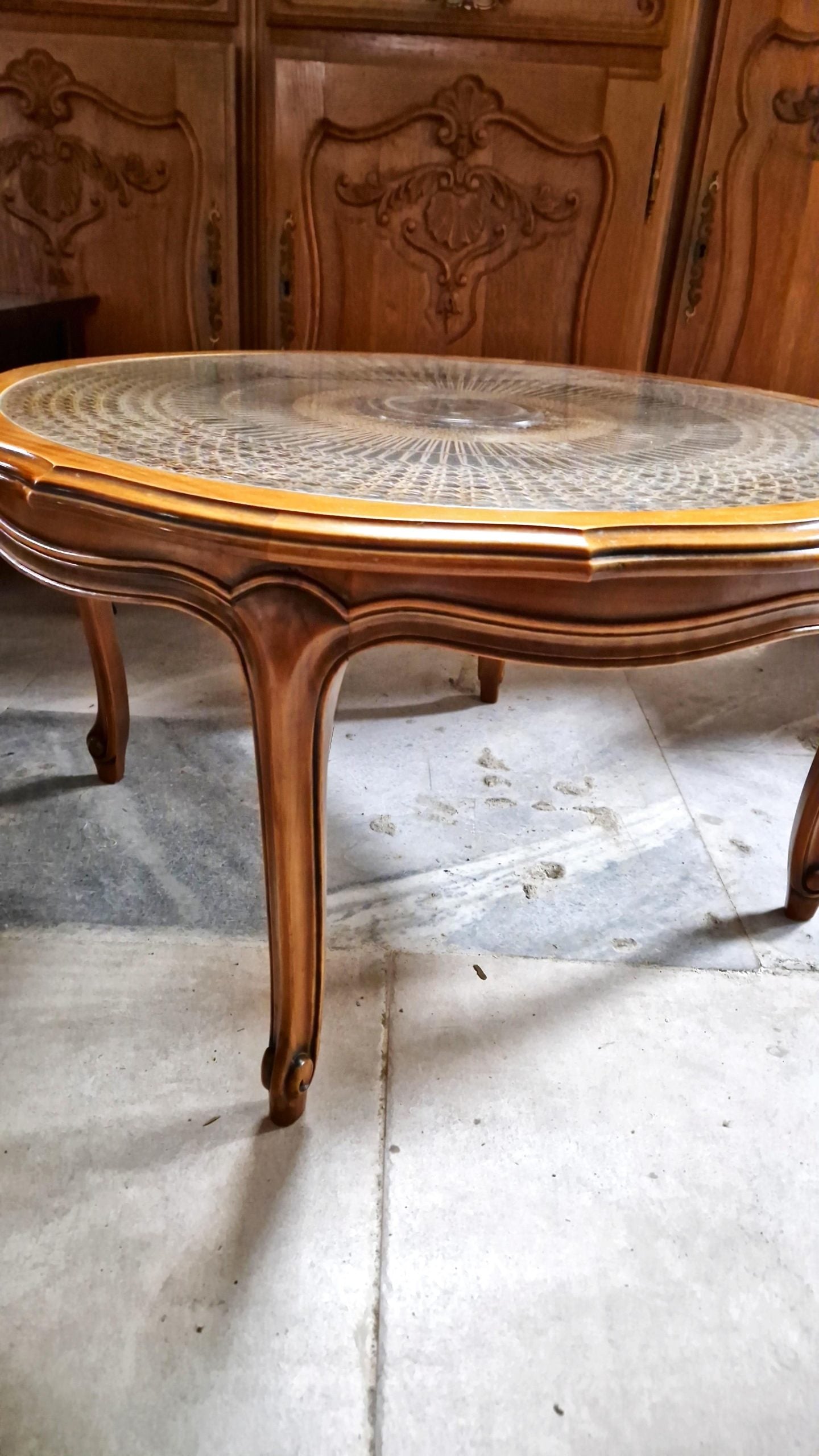 Дървена маса със стъклен плот