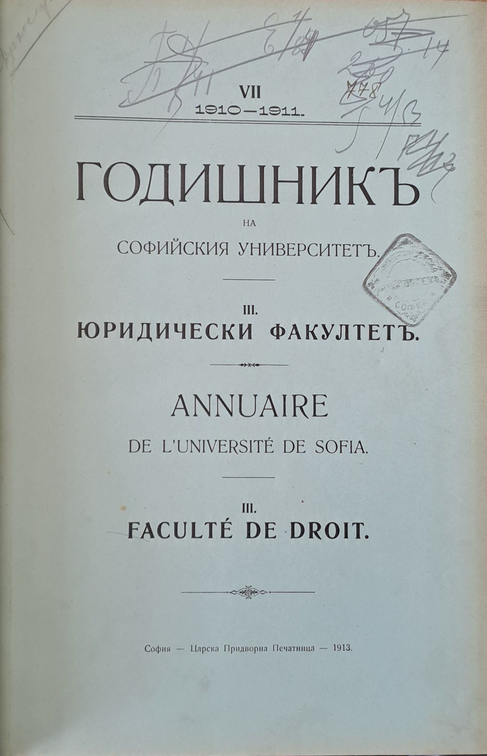 Годишник на Софийския университет, Юридически факултет