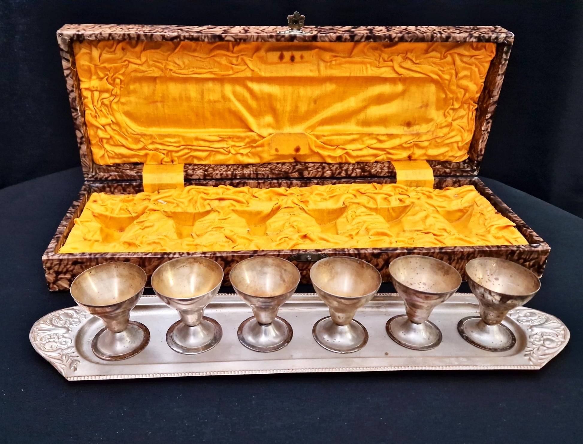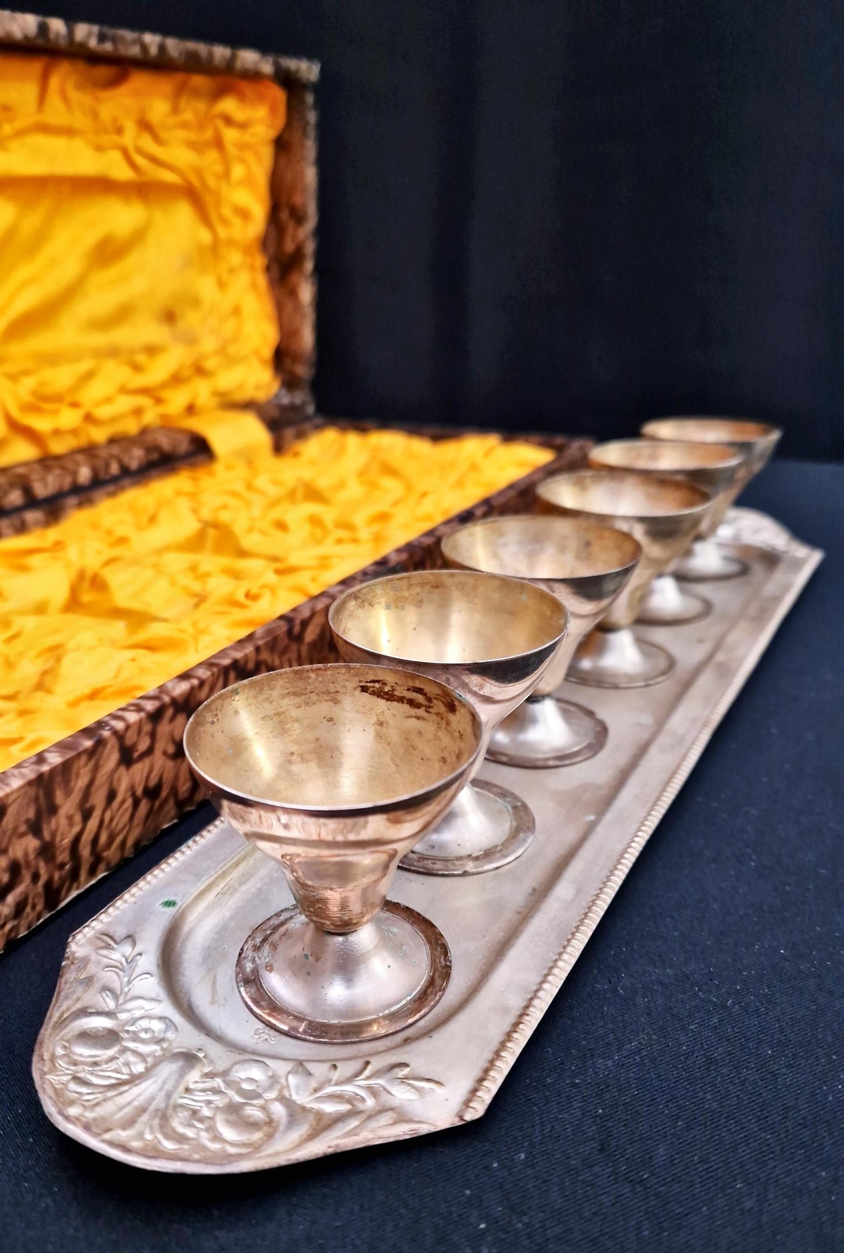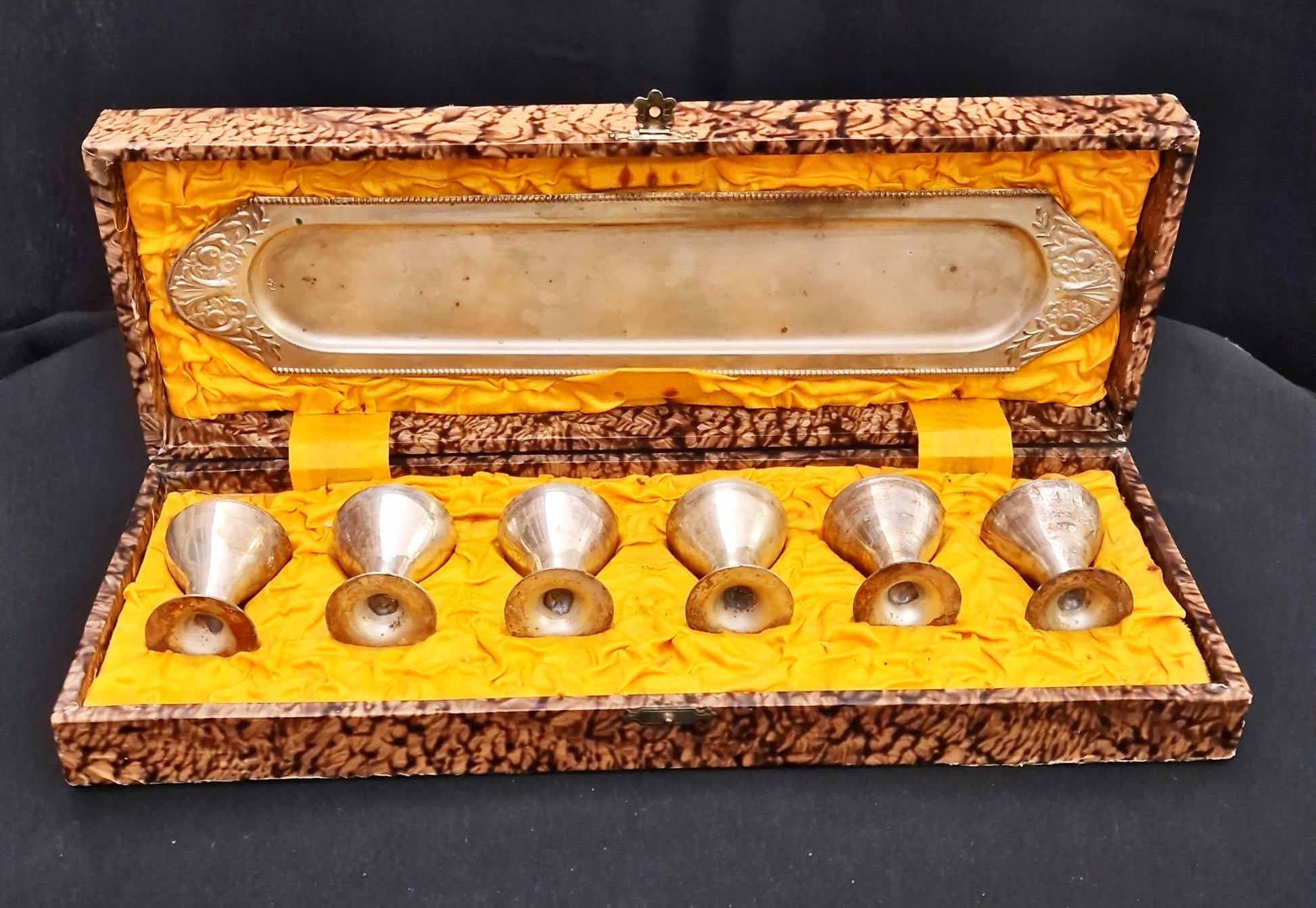 Метални чашки с поднос в кутия