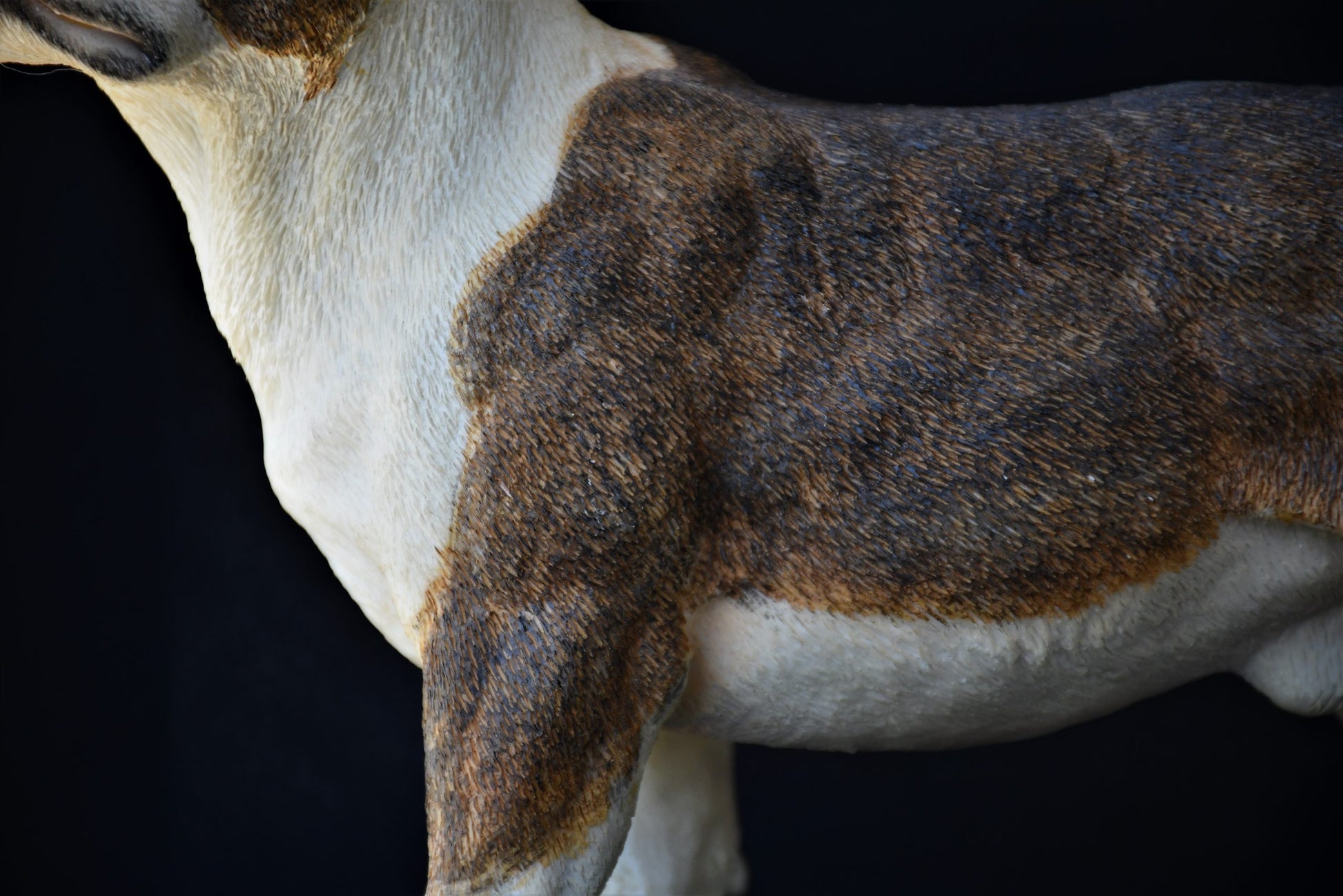 - Детайлна текстура и завършек: всеки миг остава видим в прецизната текстура на козината и фините детайли по ушите и очите, което прави скулптурата изключително близка до истинския изглед на Boston Terrier.